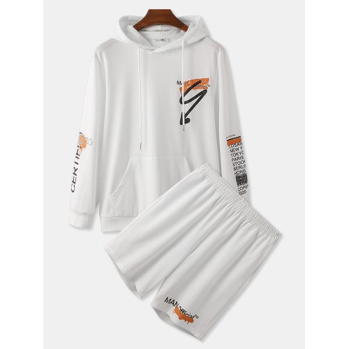 Mens Letter Print Hoodie Loose Shorts Two Pieces Street Style Sets