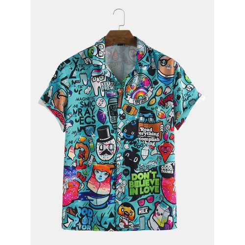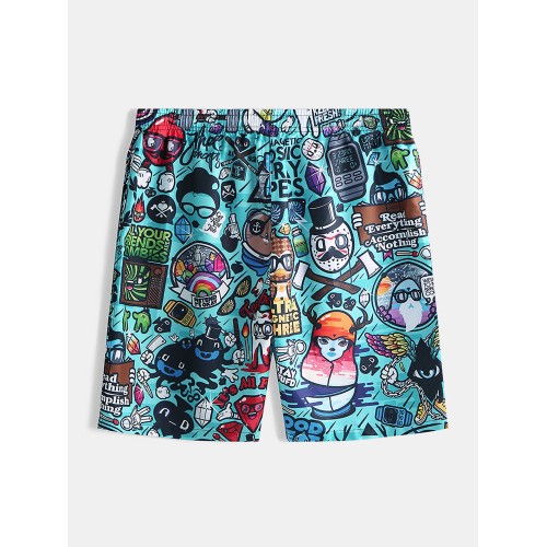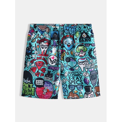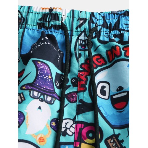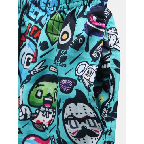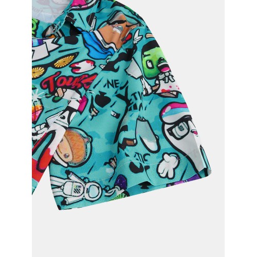 Mens Allover Funny Cartoon Print Loose Casual Two Pieces Outfits
