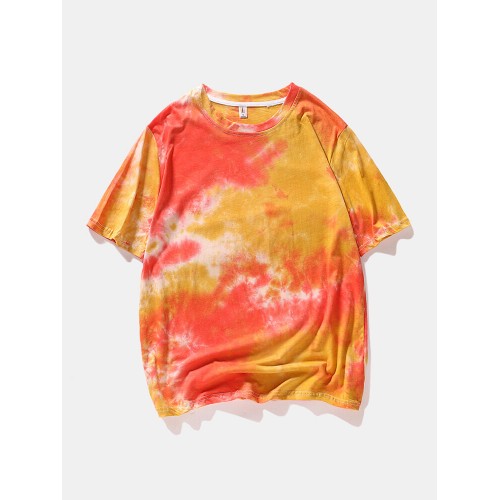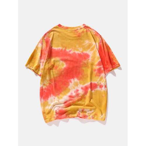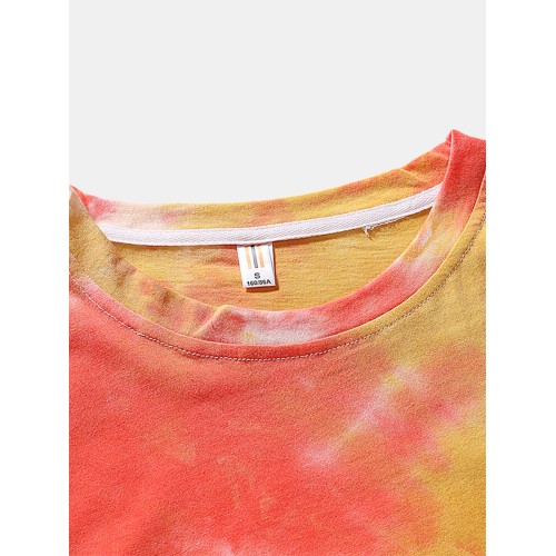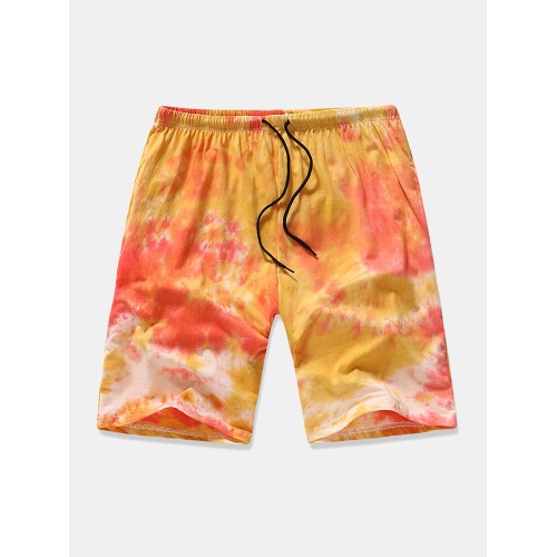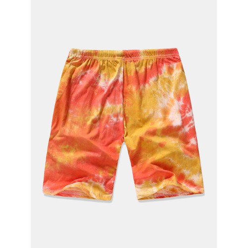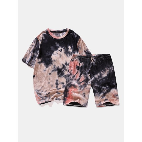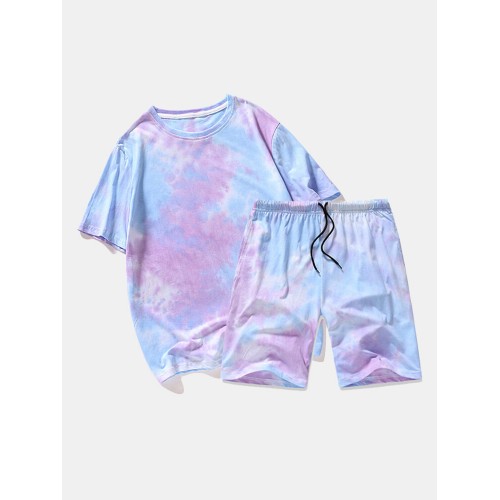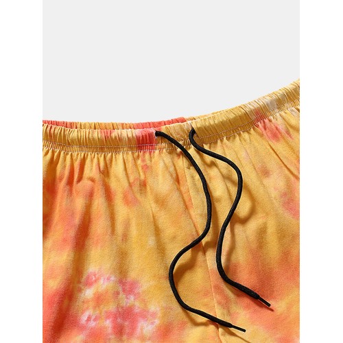 Mens Tie-Dye Print Cotton Breathable Drawstring Shorts Casual Two Pieces Outfits