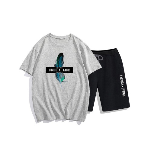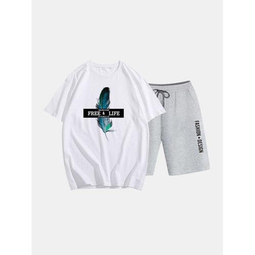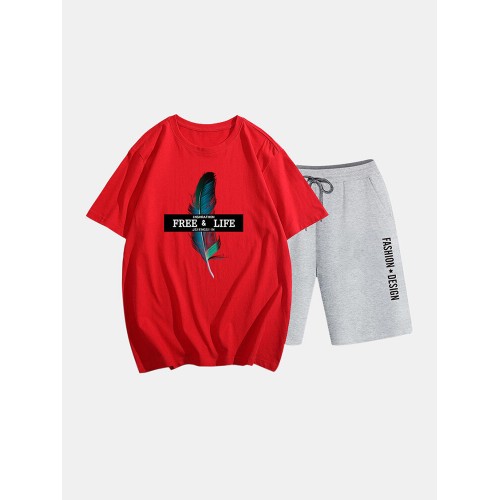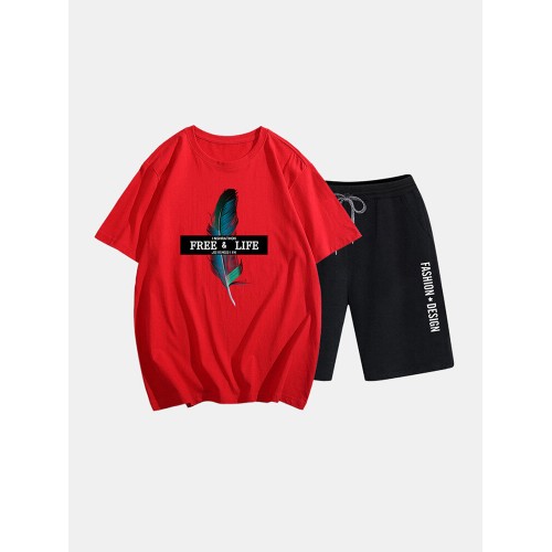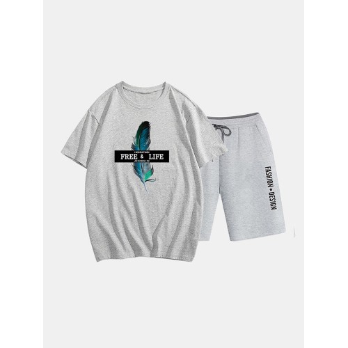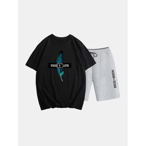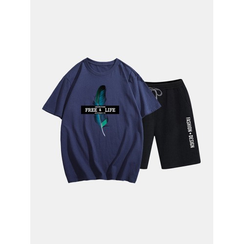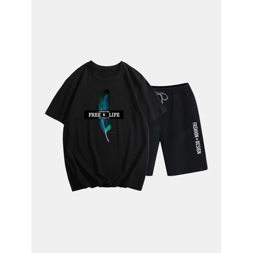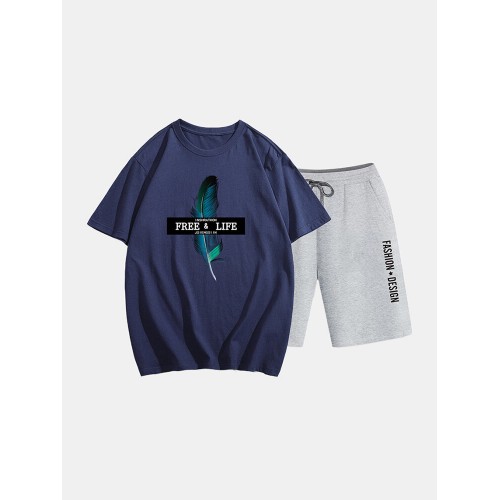 Mens Two Piece 100% Cotton Graphic Printed Sport Casual Drawstring Loungewear Set