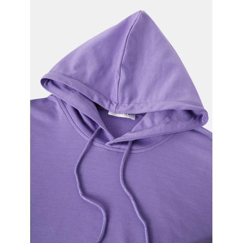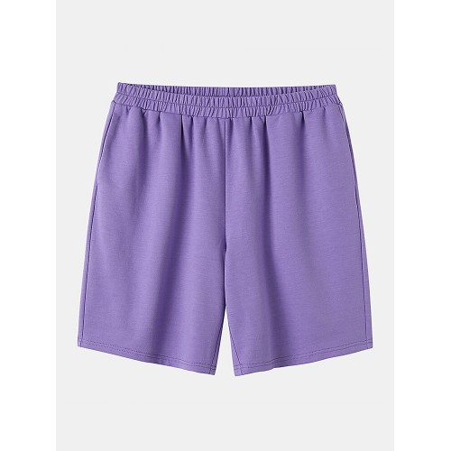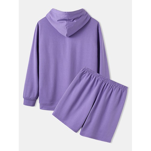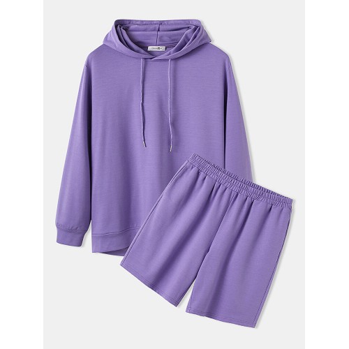 Mens Solid Drawstring Hoodie Shorts Cotton Two Pieces Sport Casual Sets