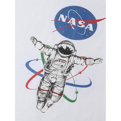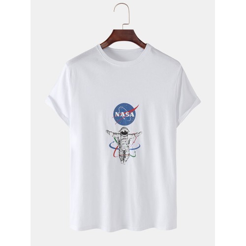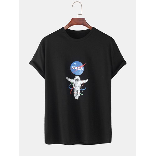 Mens NASA Astronaut Chest Print Solid Color Loose Light O-Neck T-Shirts