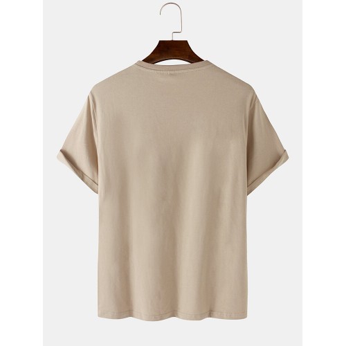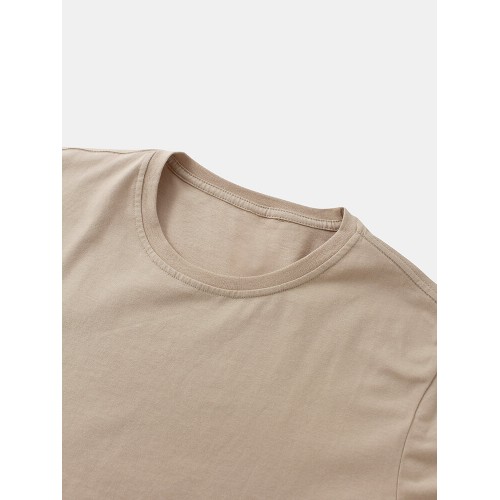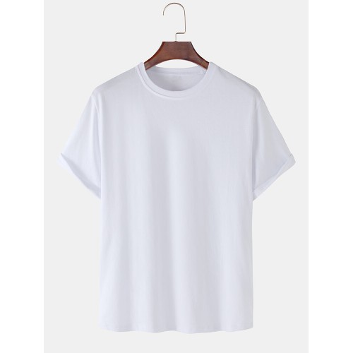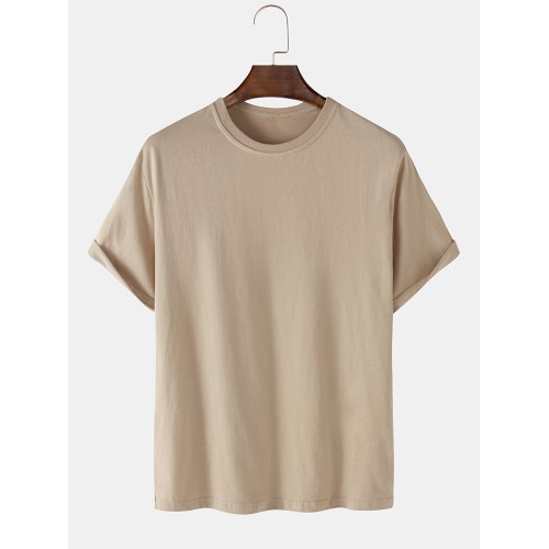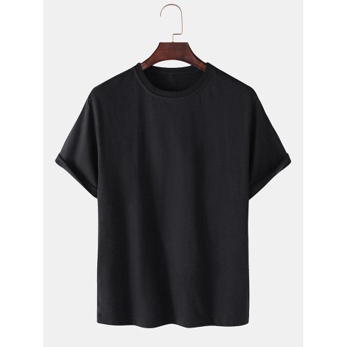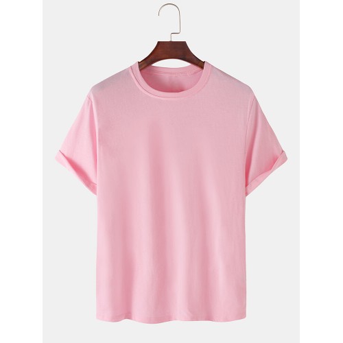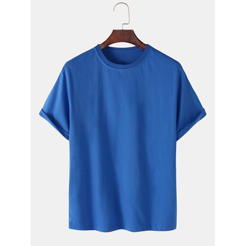 Mens 100% Cotton Solid Color Loose Light Round Neck Casual T-Shirts