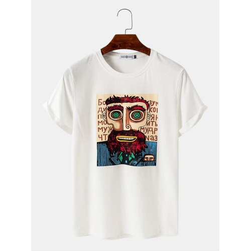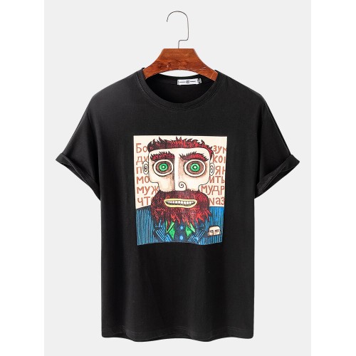 Men Cotton Cartoon Character Printed Casual T-Shirt