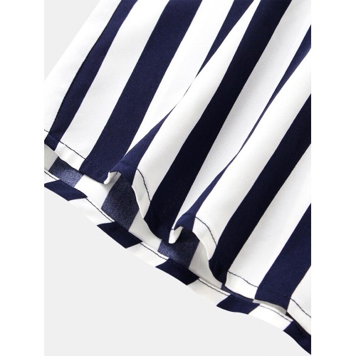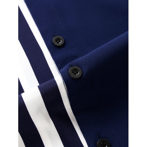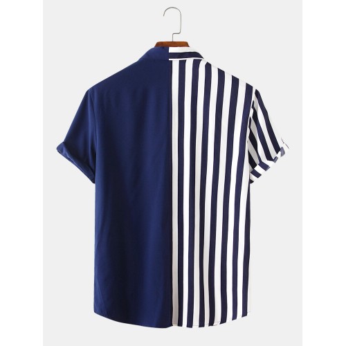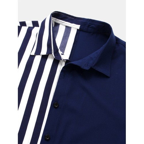 Men Patchwork Stripe Contrast Color Casual Shirt