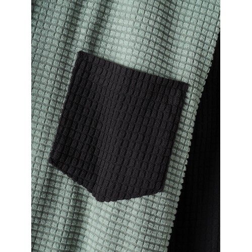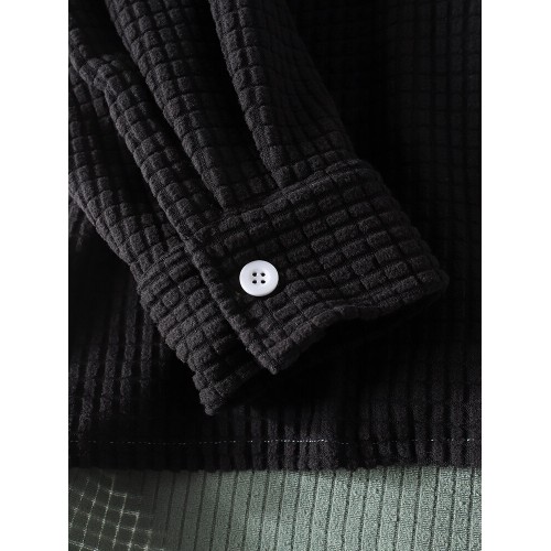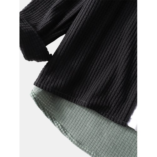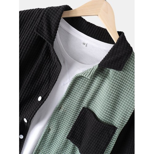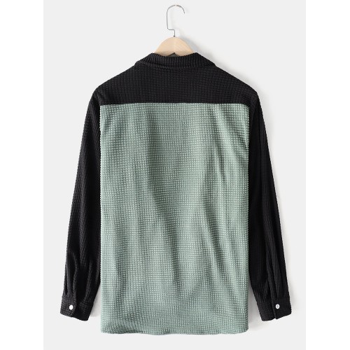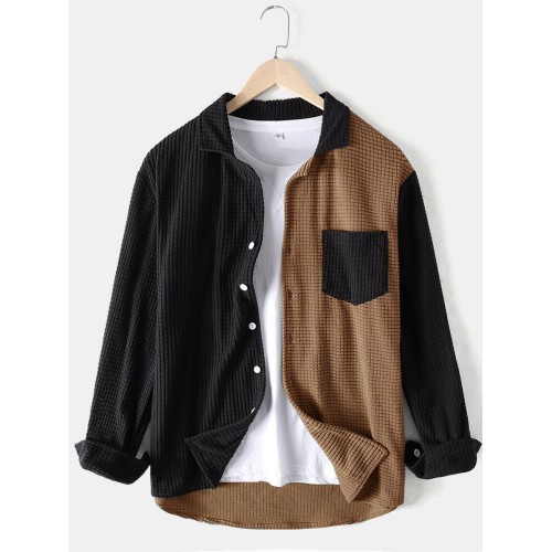 Mens Colorblock Patchwork Corduroy Lapel Long Sleeve Shirts With Pocket