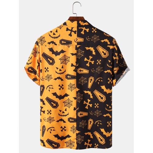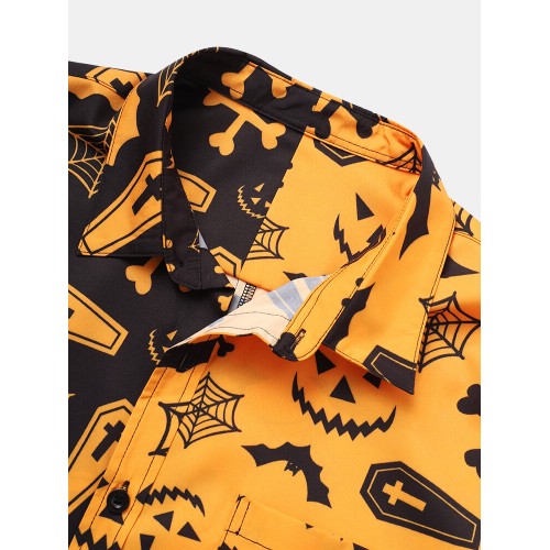 Mens Halloween Pumpkin Patchwork Party Funny Shirt