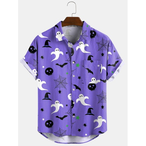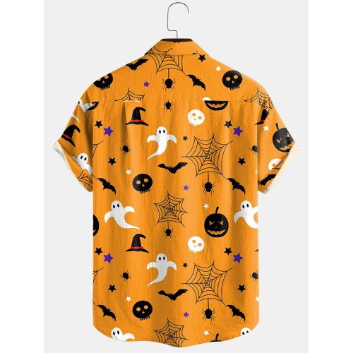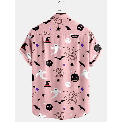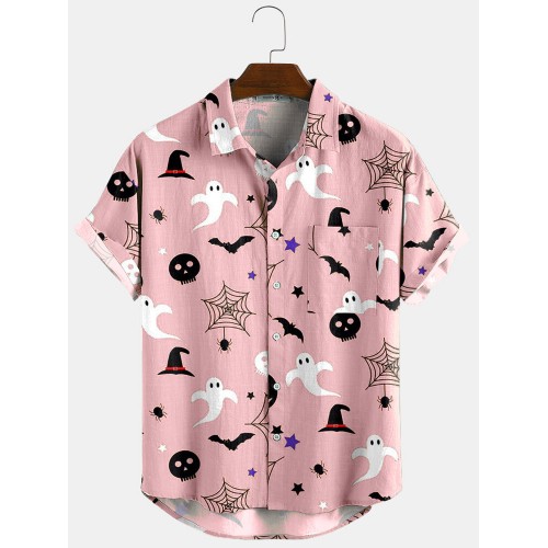 Newchic Design 3 Color Halloween Cartoon Print Turn Down Collar Short Shirts