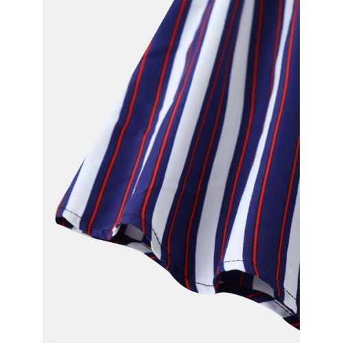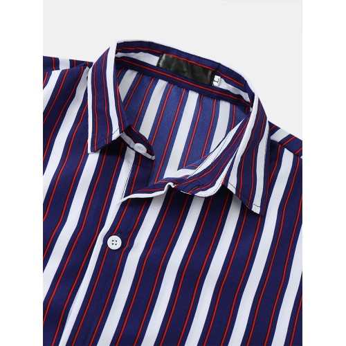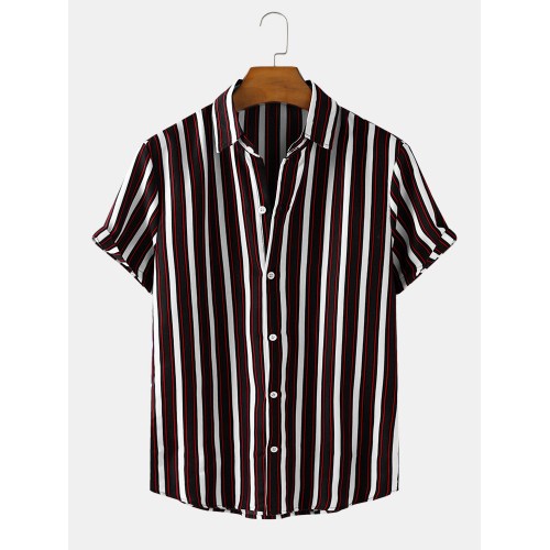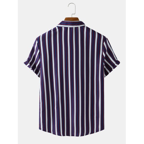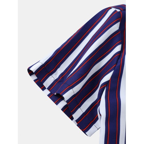 Mens Colored Stripe Printed Casual Short Sleeve Designer Shirts
