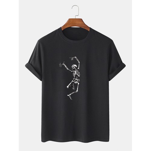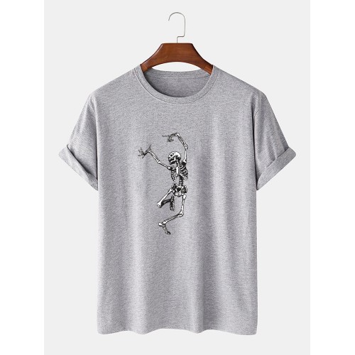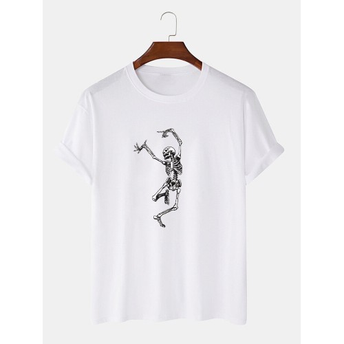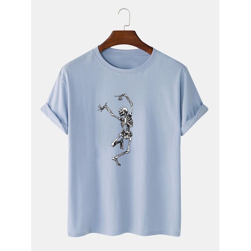 Mens 100% Cotton Halloween Skeleton Print O-Neck Casual Short Sleeve T-Shirts