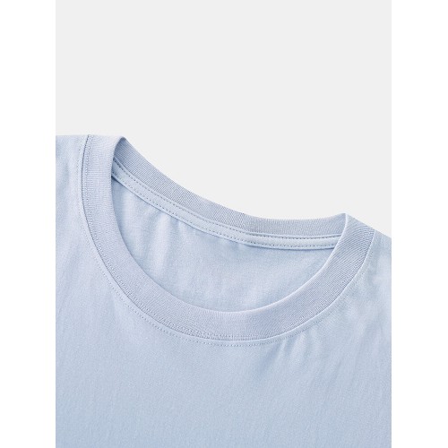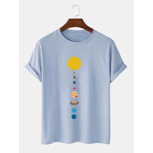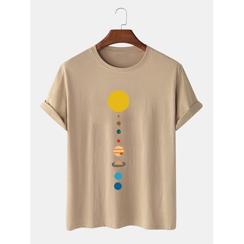 Mens 100% Cotton Cartoon Planet Print Solid Thin Loose O-Neck T-Shirt