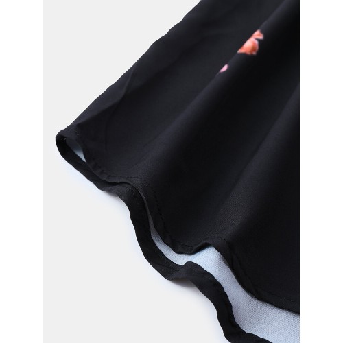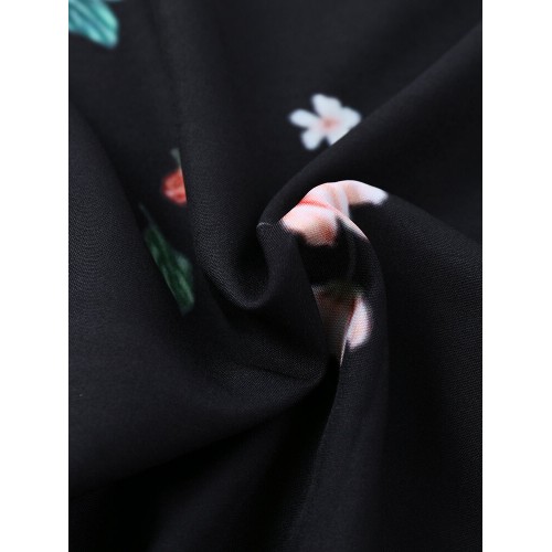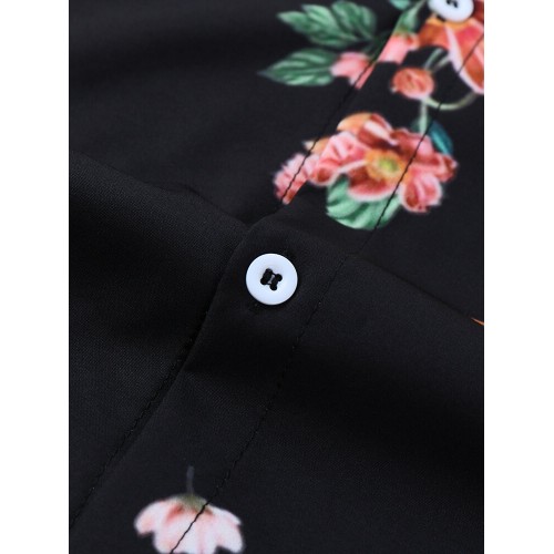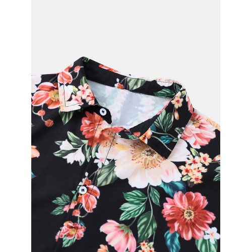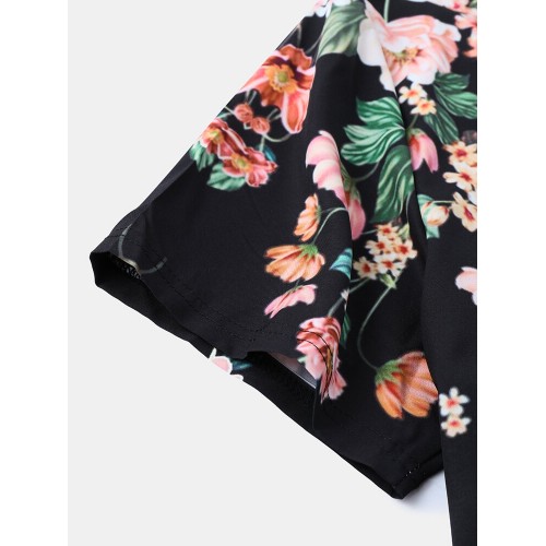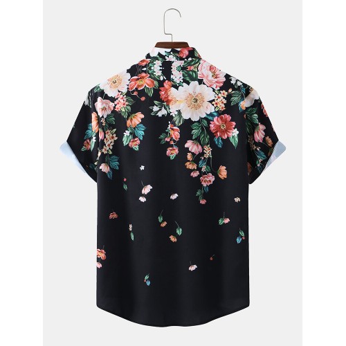 Mens Ethnic Floral Print Loose Casual Breathable Short Sleeve Shirts