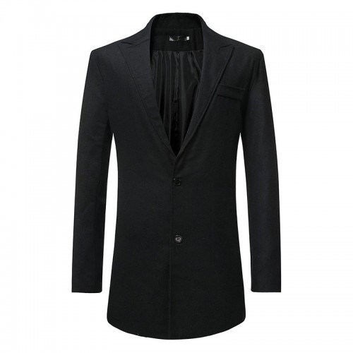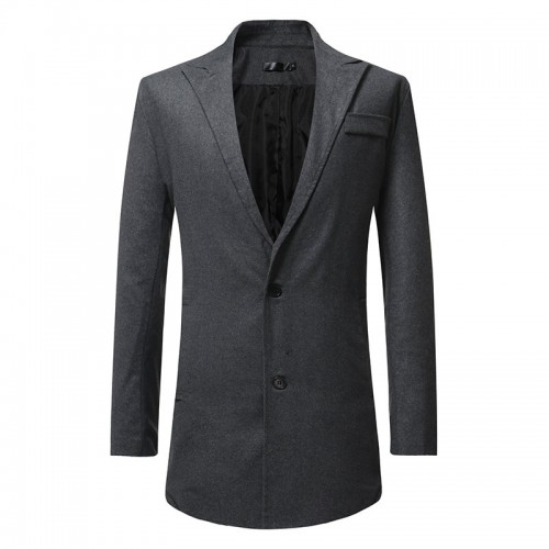 Mens Single Breasted Mid Long Slim Fit Casual Bussiness Solid Color Coat Jacket Suit