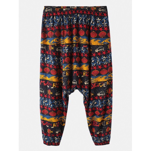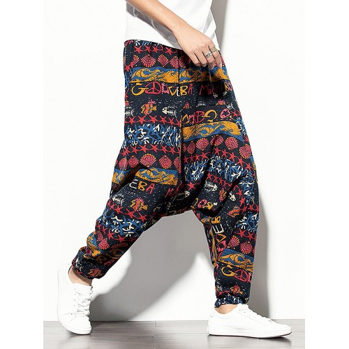 Occasion:Daily Casual, Leisure Color:Navy Size:S, M, L, XL, 2XL Pattern:Other Brand:ChArmkpR Thickness:Moderate Season:Spring, Autumn, Summer Material:Cotton Design Element:Print, Elastic Waist Length:Pants Fit Type:Regular, Loose Waist Type:Mid Collection:Ethnic Package Include:1*PantsPlease Note:Please see the Size Reference to find the correct size.