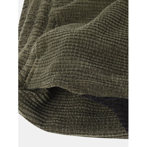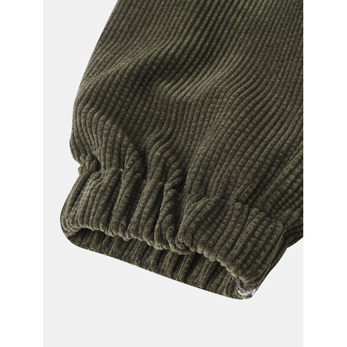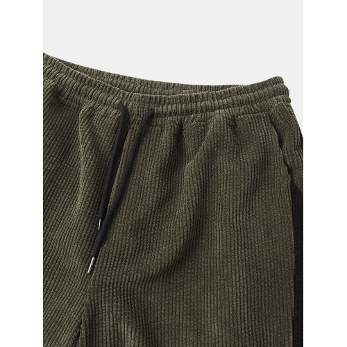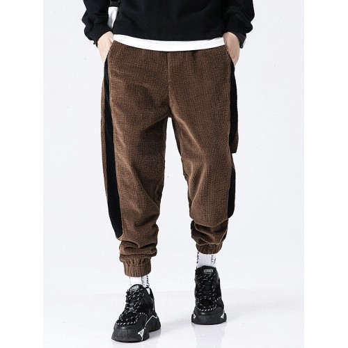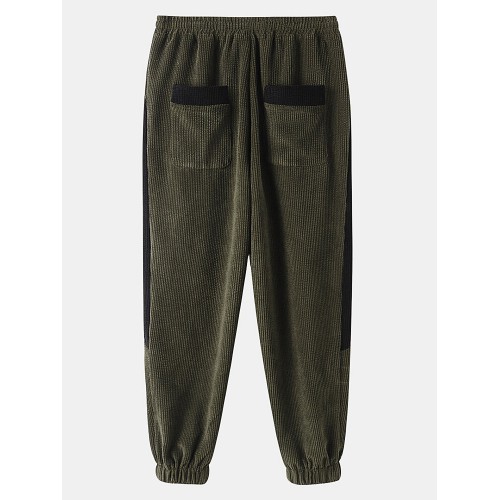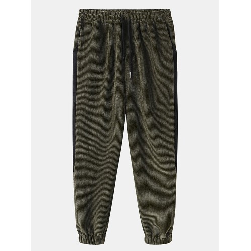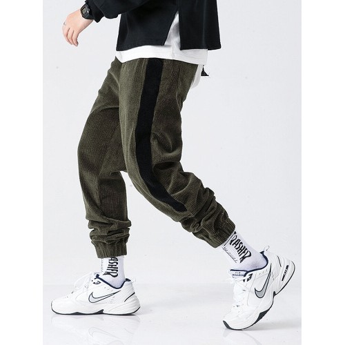 Mens Corduroy Side Stripe Casual Drawstring Elastic Cuff Pants