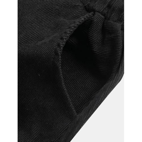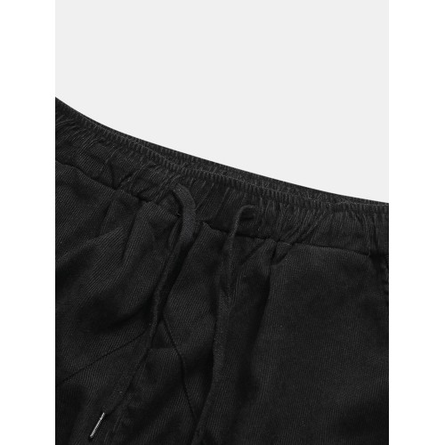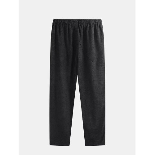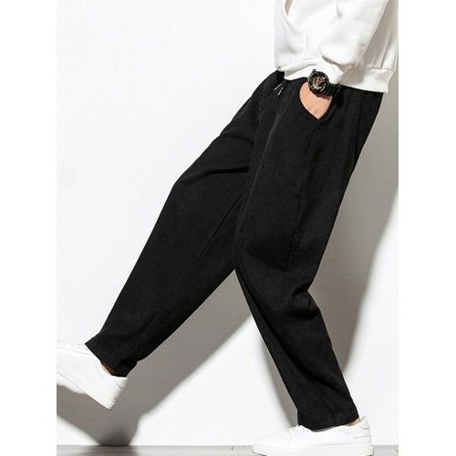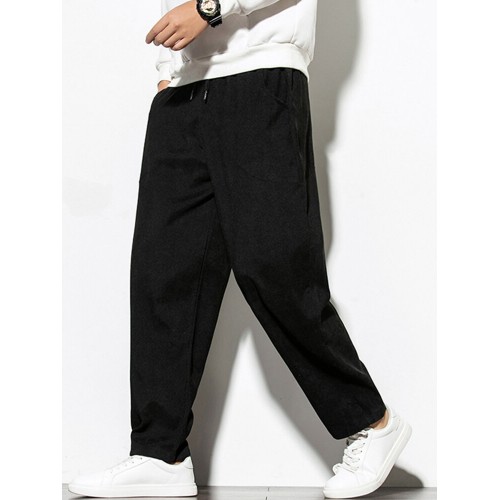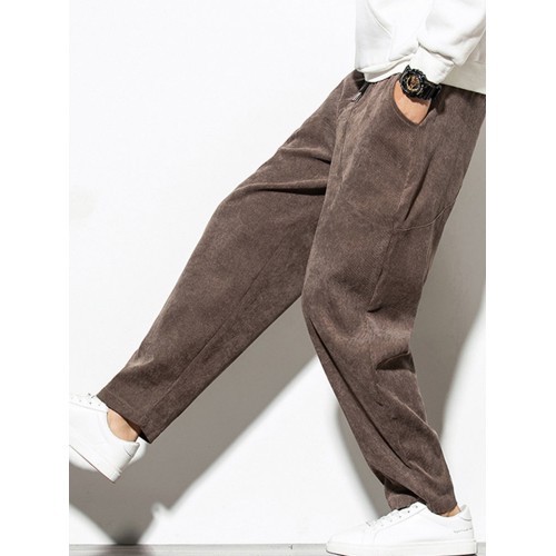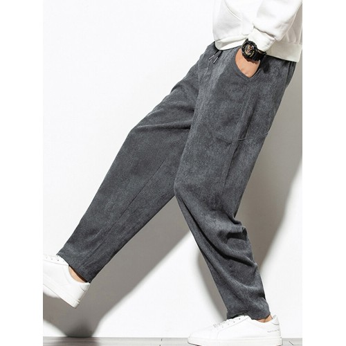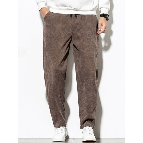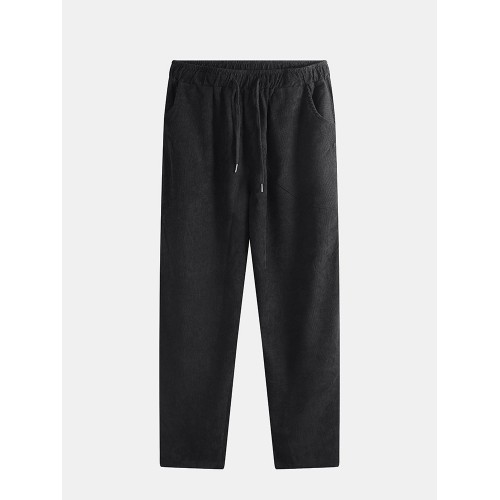 Mens Vintage Fashion Corduroy Drawstring Slim Fit Casual Plain Straight Pants
