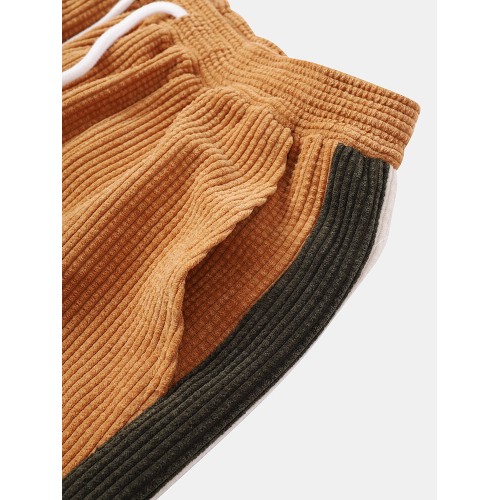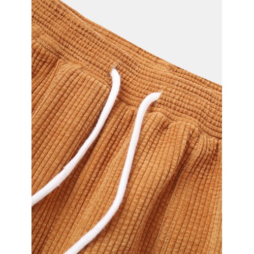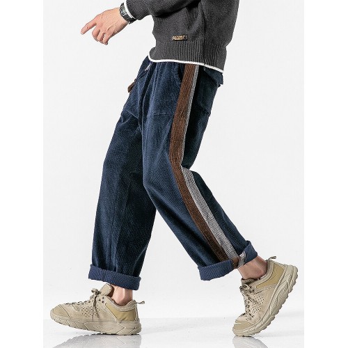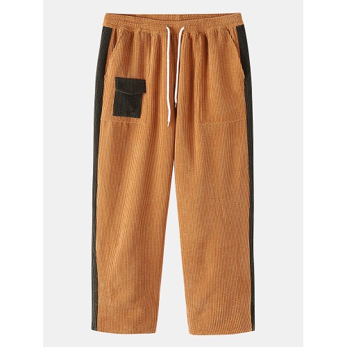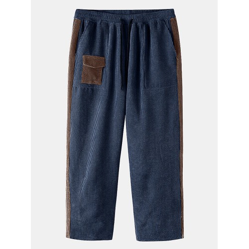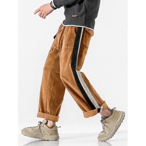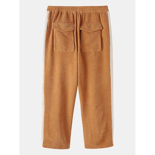 Mens Corduroy Contrast Side Stripe Casual Drawstring Pants With Back Flap Pockets