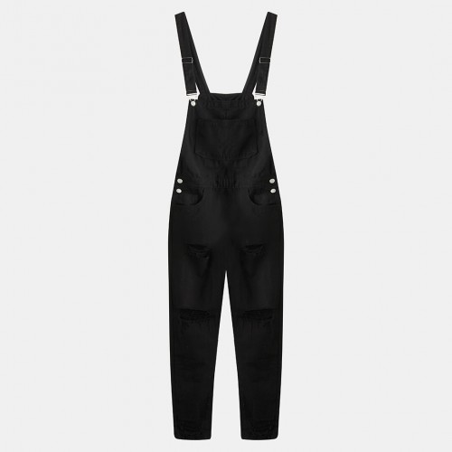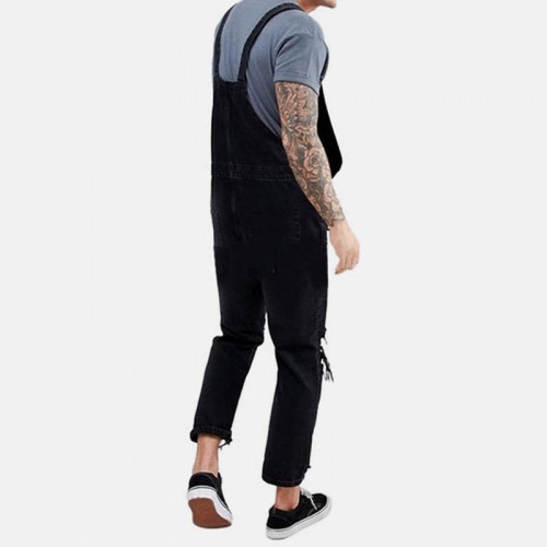 Mens Denim Ripped Solid Color Ankle Lenght Jumpsuits Suspenders