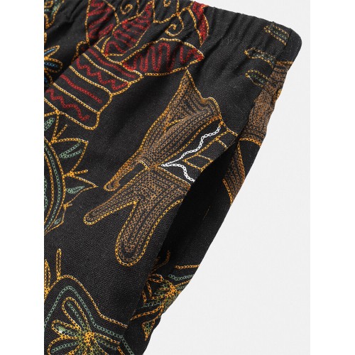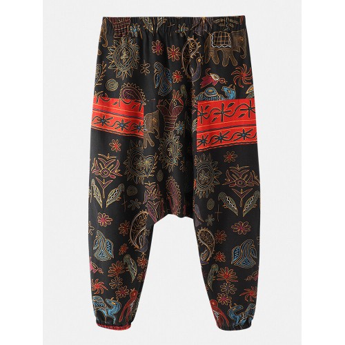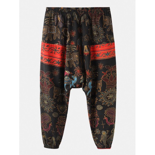 Mens Cotton Ethnic & Tribal Pattern Print Loose Designer Jogger Pants