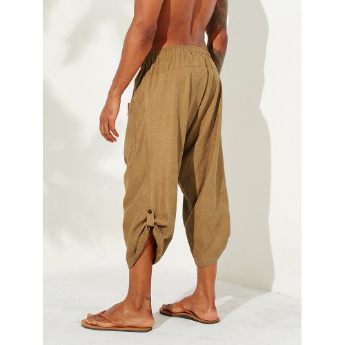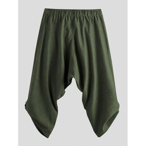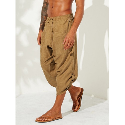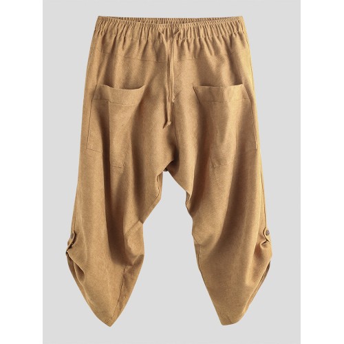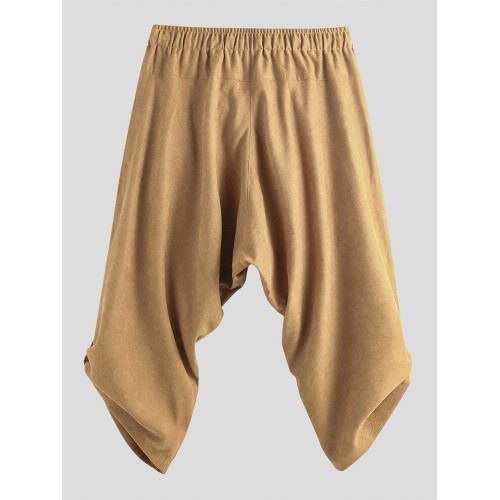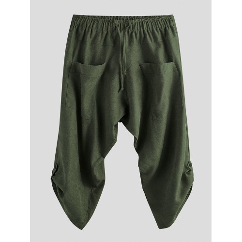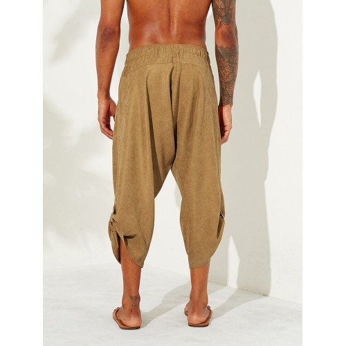 Mens Corduroy Casual Ethnic Style Calf-Length Loose Drawstring Harem Pants