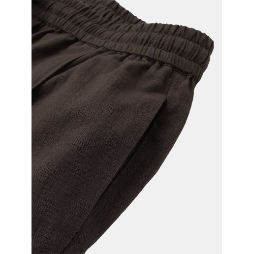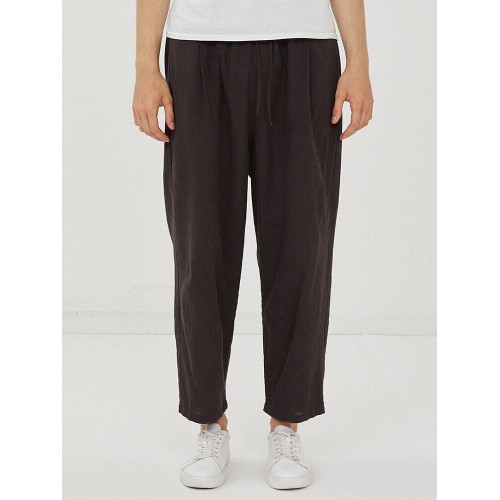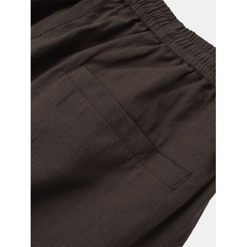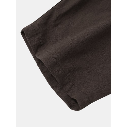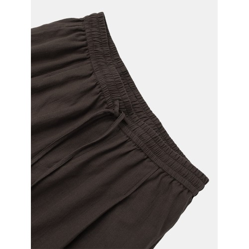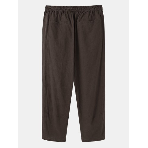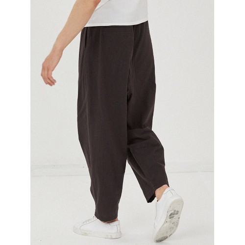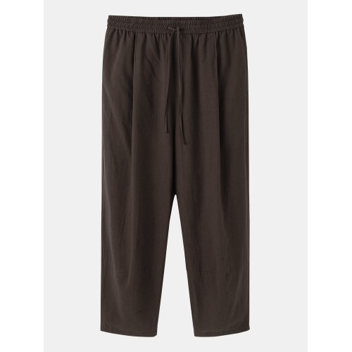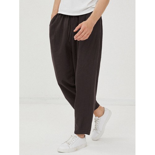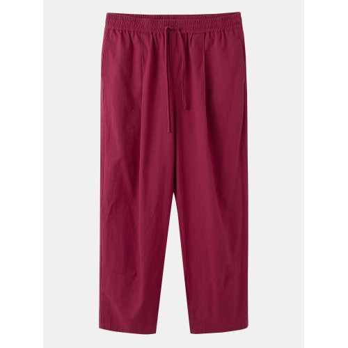 Mens 100% Cotton Solid Color Loose Fit Drawstring Waist Wide Leg Pants
