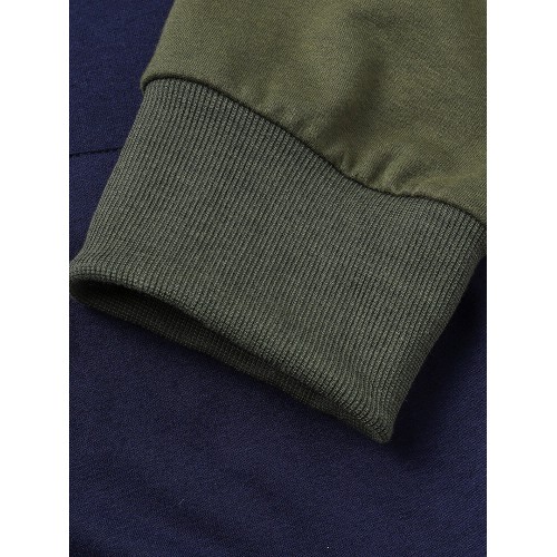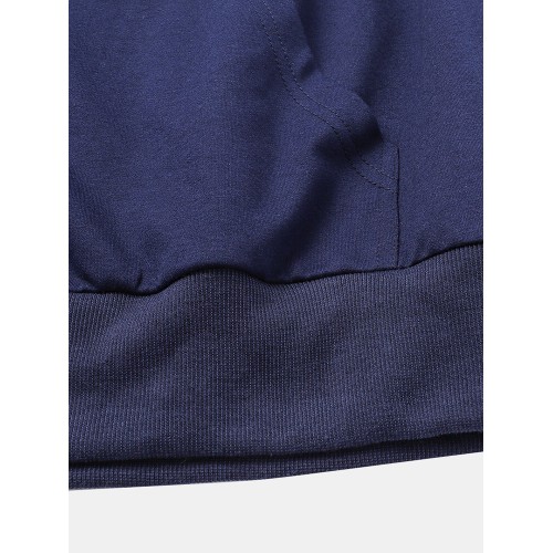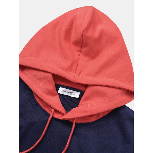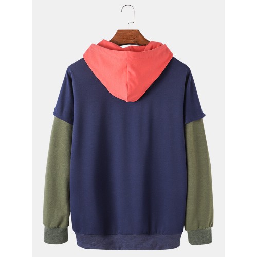 Mens Colorblock Patchwork Loose Casual Doctor Sleeves Hoodies With Muff Pocket