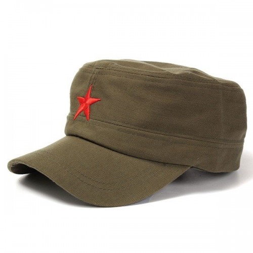Men Women Red Five-Pointed Star Military Hat Cotton Adjustable Army Cadet Cap Lovers Hat