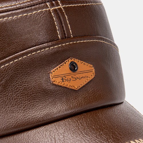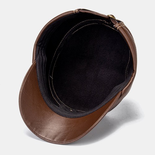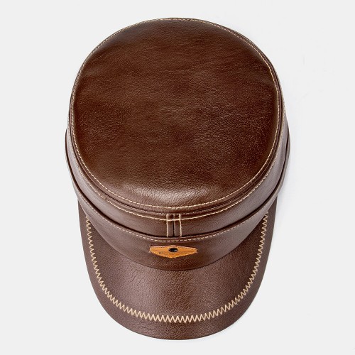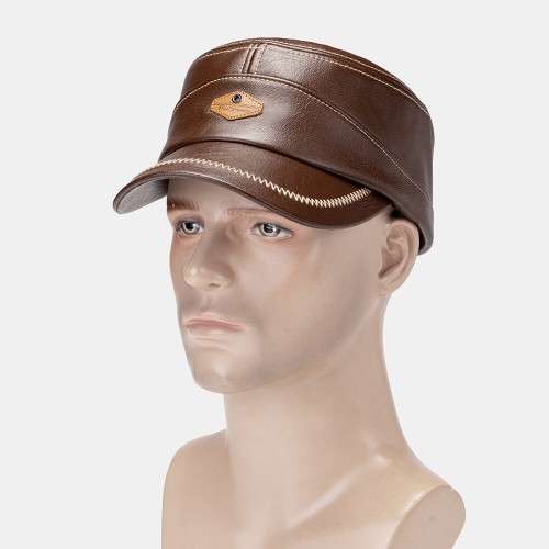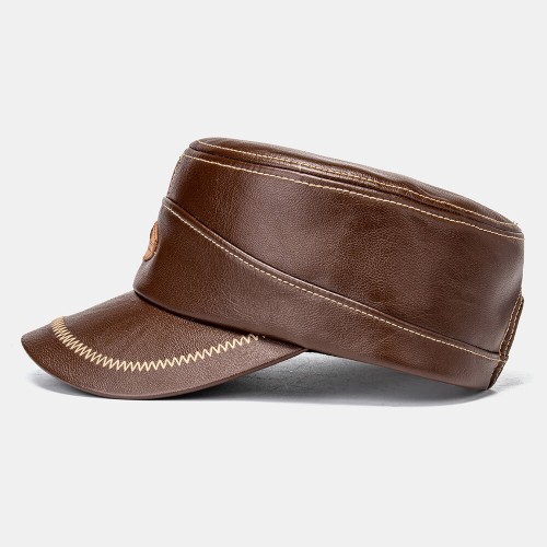 Men Solid Color Leather Hat Retro Keep Warm Outdoor Flat Hat Military Hat