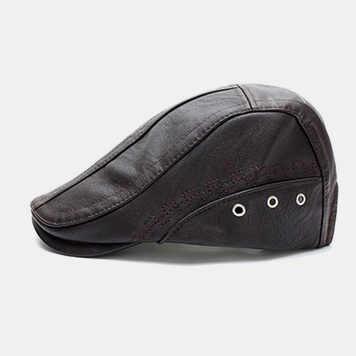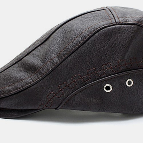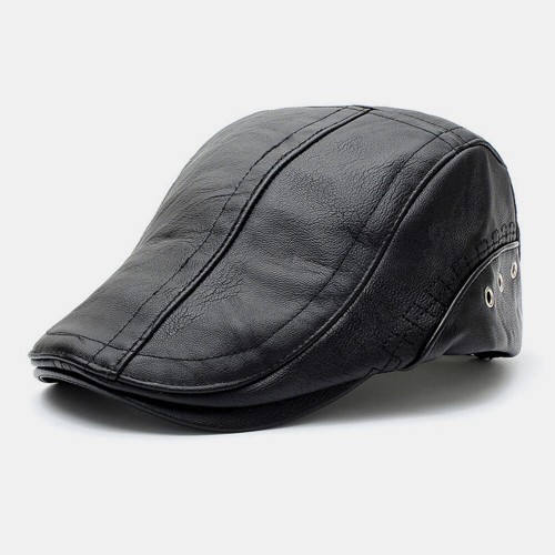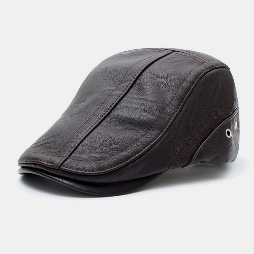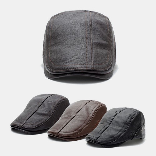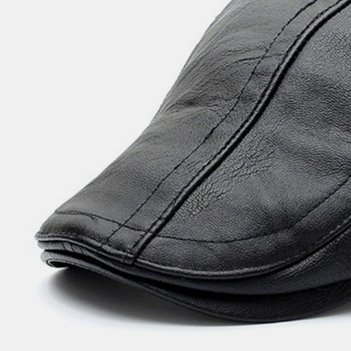 Men Genuine Leather Solid Color Sunscreen Keep Warm Casual Forward Hat Beret Hat
