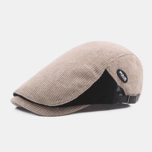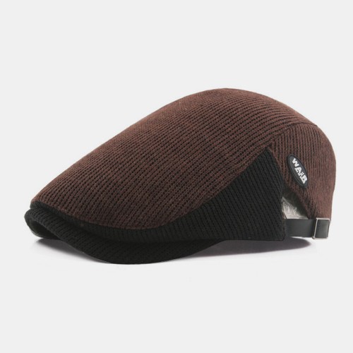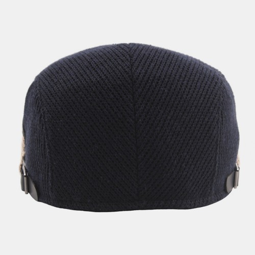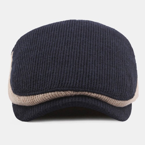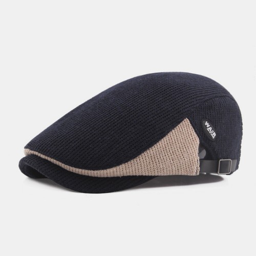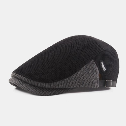 Men Wool Plus Thick Keep Warm Patchwork Color Knitted Forward Hat Beret Hat
