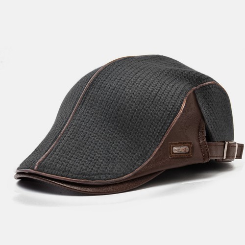 Men's Knit Flat Cap Padded Warm Beret Caps Casual Outdoor Visor Forward Hat