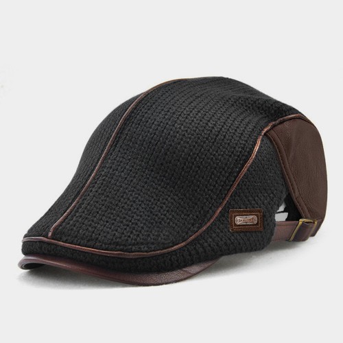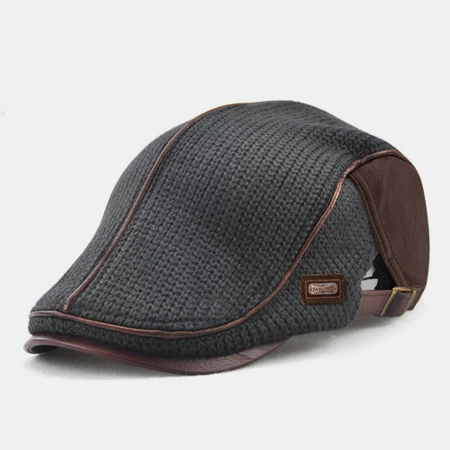 Men Knit Leather Patchwork Color Casual Personality Forward Hat Beret Hat