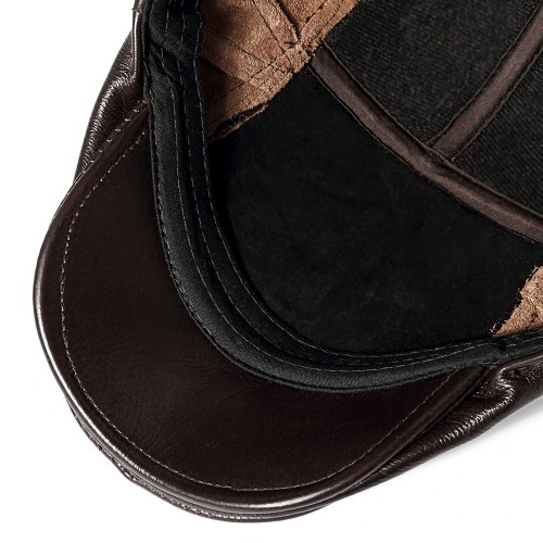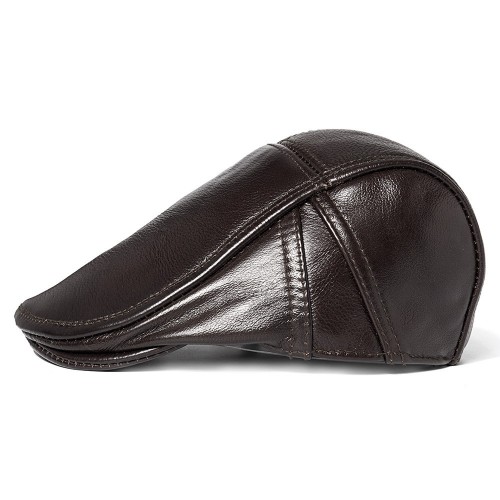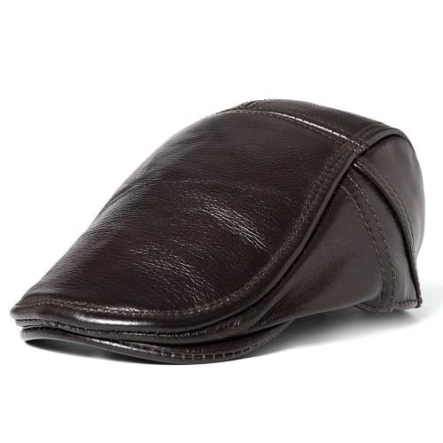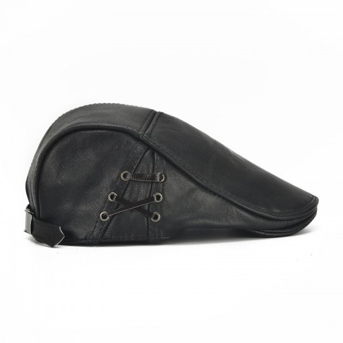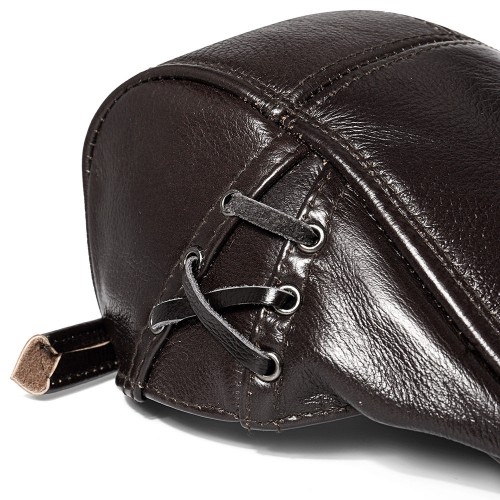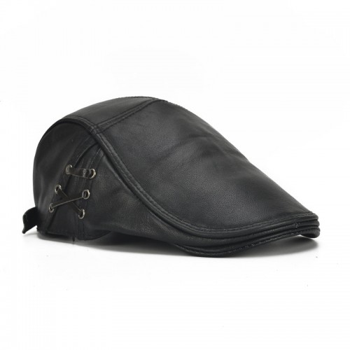 Men Leather Lace-up Beret Caps Casual Outdoor Winter Warm Windproof Duck Hats Adjustable Caps