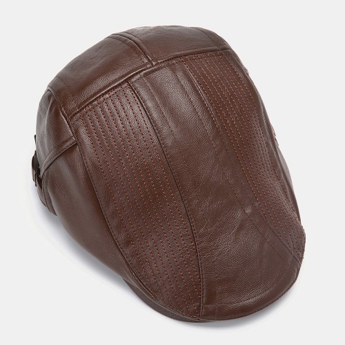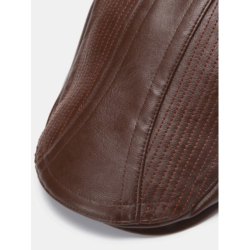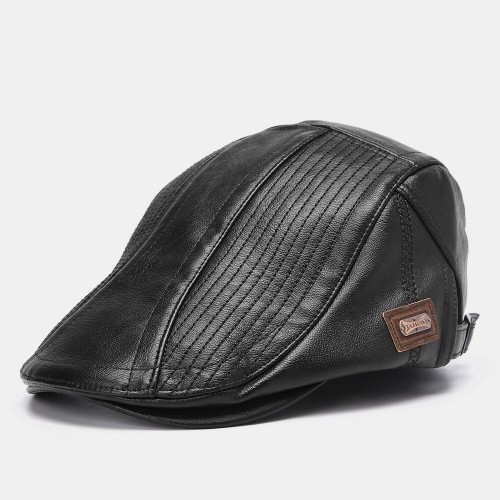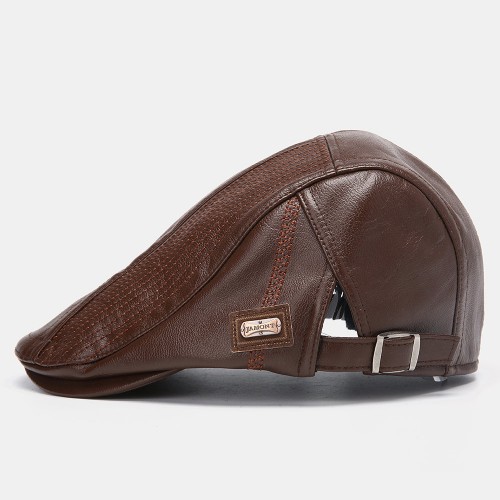Men's Leather Beret Hat Casual Newsboy Cap Warm Hats With Needle Texture Flat Caps