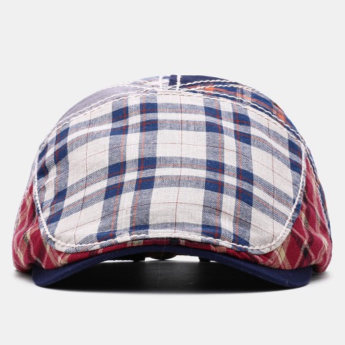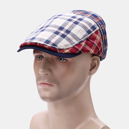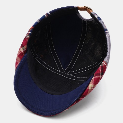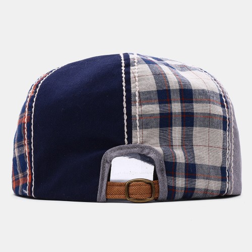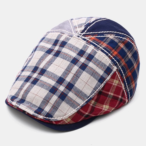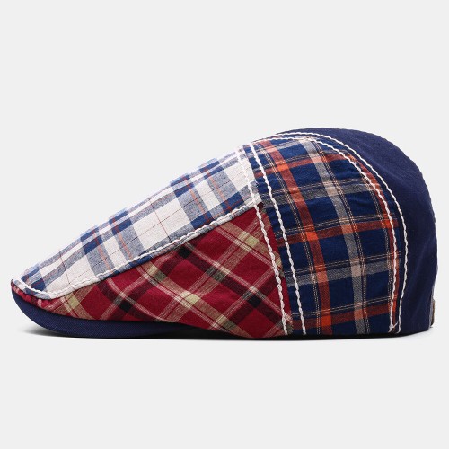 Men Patchwork Color Lattic Pattern Visor Casual Forward Hat Beret Hat Flat Caps