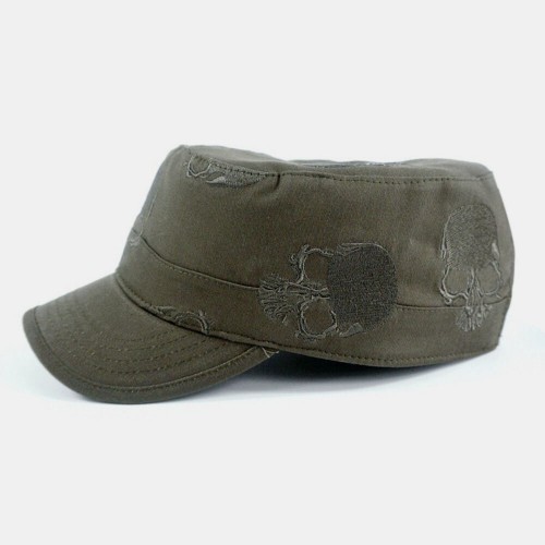 Skull Embroidery Autumn And Winter Flat Cap Men's Military Cap