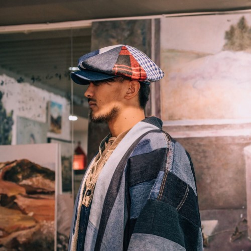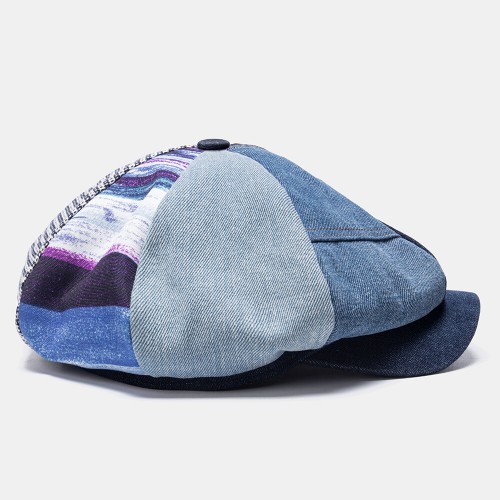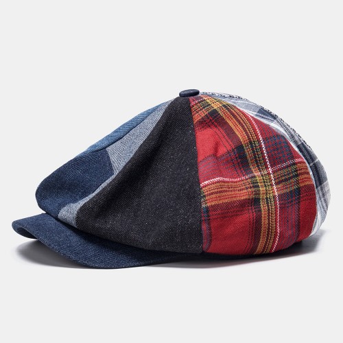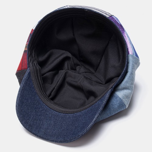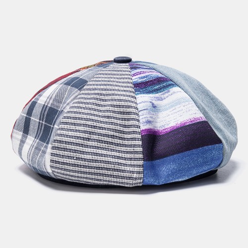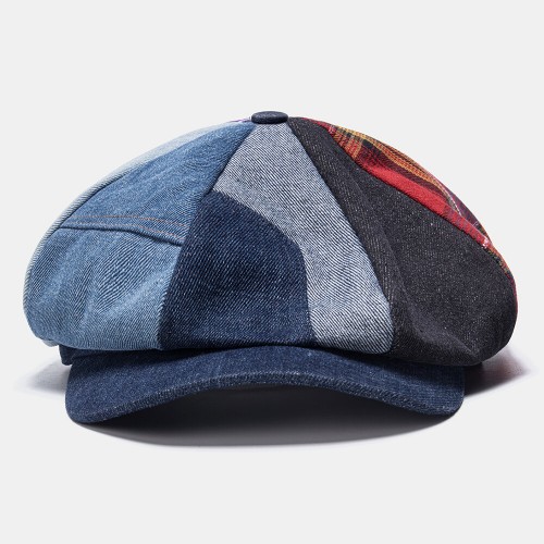 Men &Women Denim Plaid Striped Stitching Octagonal Cap Berets Hat Newsboy Caps Flat Caps