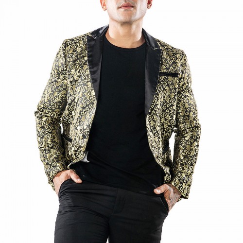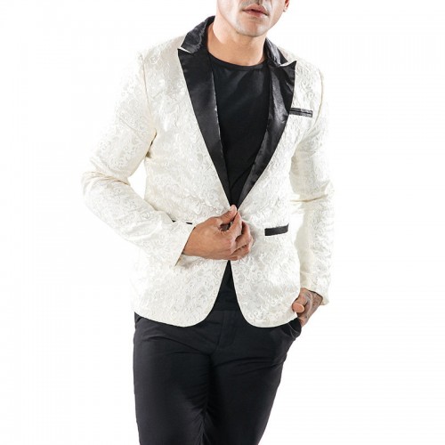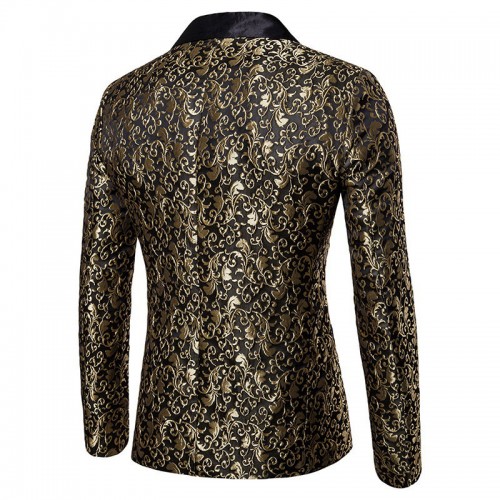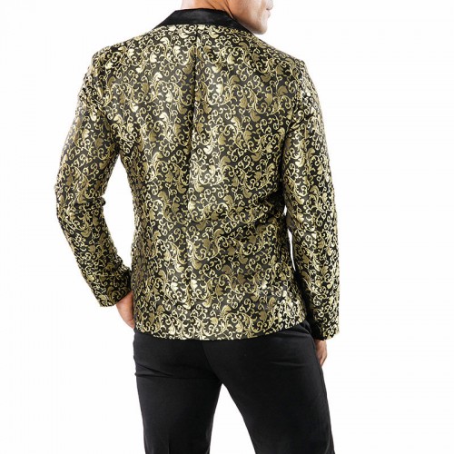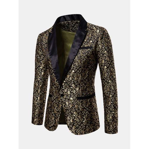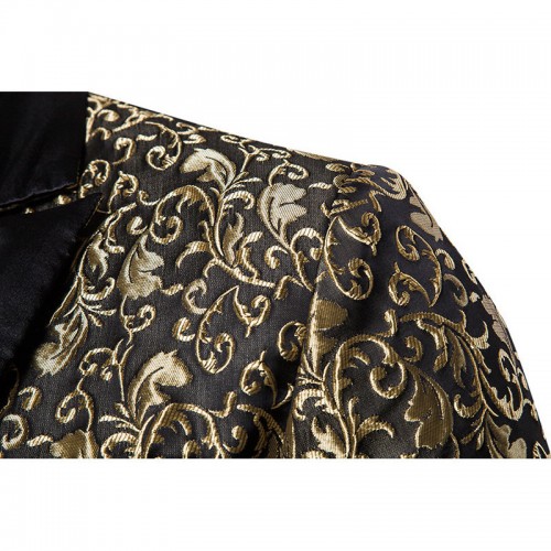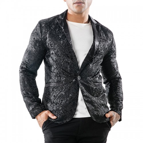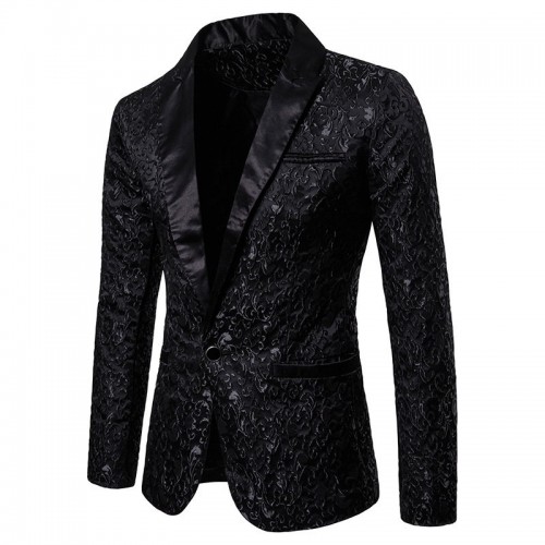 Mens Jacquard Printing Casual Dress Suit Palace Wedding Stage Banquet Lapel Blazer