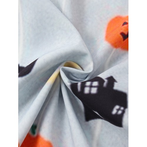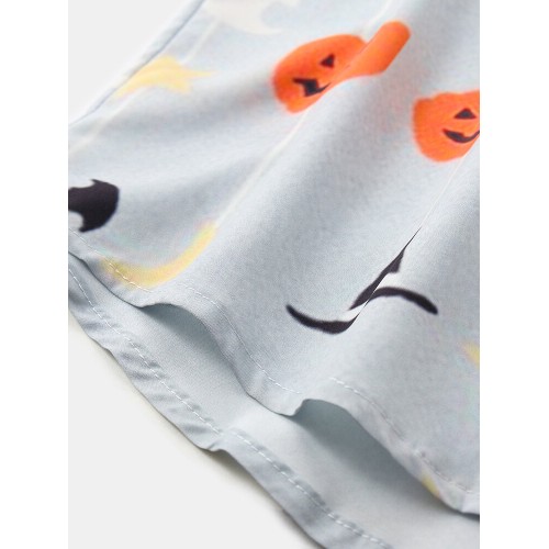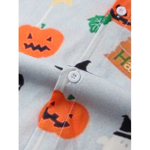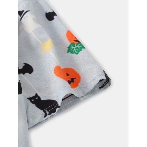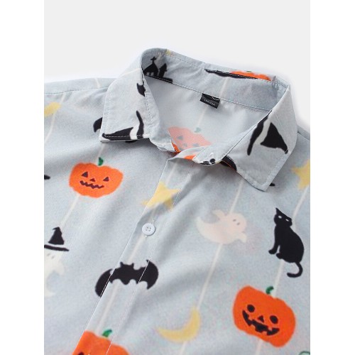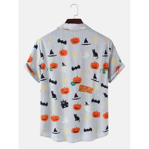 Mens Halloween Funny Pumpkin Cat Printed Casual Loose Short Sleeve Shirts