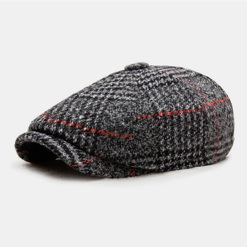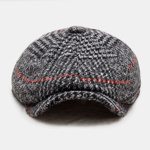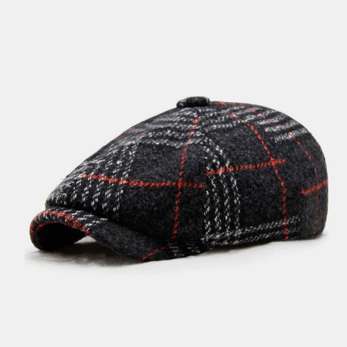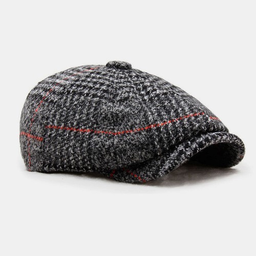 Men British Style Retro Painter Lattice Pattern Fashion Casual Keep Warm Forward Hat Beret Hat Octagonal Cap